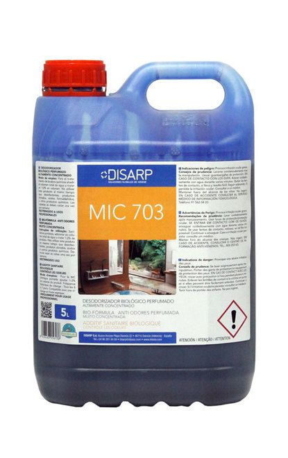 Formulación liquida biológica altamente perfumada compuesta de una combinación sinérgica de cepas de microorganismos seleccionadas específicamente para el control de los olores y la degradación de los desechos orgánicos. Especialmente diseñada para el mantenimiento y control de olores de wc químicos, canalizaciones de cocinas o aseos y depósitos de aguas residuales sanitarias.